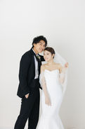 シンプルな背景でベールを使って二人が遊びながら楽しんでる写真が撮れるシュチュエーションです
