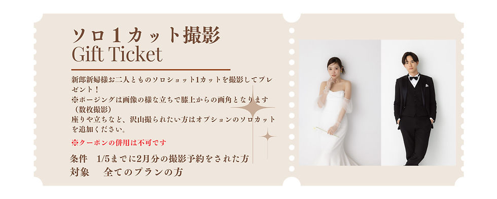 ・新郎新婦様お二人とものソロショット1カットを撮影してプレゼント!